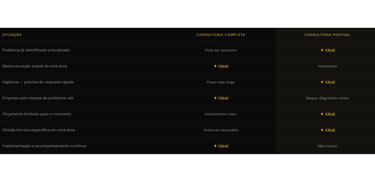 Analisamos o problema, fazemos as perguntas certas e identificamos a causa raiz — sem enrolação e sem diagnóstico desnecessariamente amplo.